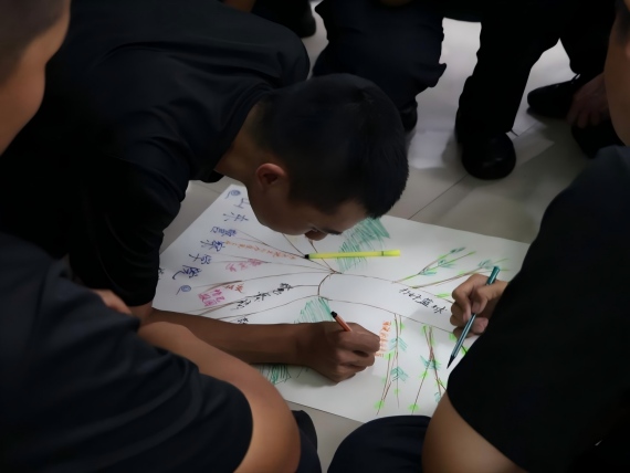 在分享交流环节,同学们敞开心扉,真挚地分享了入学以来的心路历程。多位新生坦言:"刚开始真的很不适应,训练强度大,想家的时候只能躲在被子里哭。""第一次集合迟到被批评,才意识到警校和普通大学真的不一样,但慢慢地开始喜欢上这种充实的生活,队友之间的情谊也让我感受到了温暖”。还有的同学表示:"这次活动让我明白,心理素质和体能训练同样重要,我们要学会在压力中成长。""原来不止我一个人会感到迷茫,这次活动让我找到了归属感和前进的勇气。"